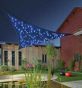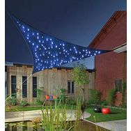 Créez un espace d'ombre en journée et appréciez un éclairage doux en soirée grâce au voile d'ombrage ciel étoilé triangulaire Jardiline. 75 LEDS solaires avec allumage automatique le soir. Toile Austral polyéthylène (180 g/m²) de 3 m de côté, coloris gris ardoise. Renforts aux extrémités et anneaux acier galvanisé. Perméable et respirant. Possibilité d'une alimentation secteur grâce à l'adaptateur secteur 220V Jardiline (vendu séparément)