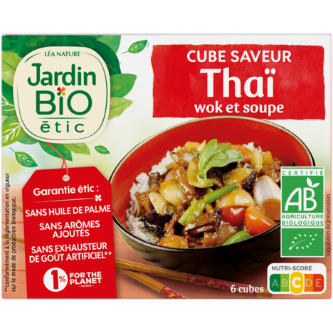 Les cubes saveurs Jardin BiO étic vous permettent de réaliser vos wok et soupes asiatiques facilement. Sans huile de palme 1% for the planet BIO Sans exhausteur de goût artificiels Sans arôme ajouté Sans matières grasses