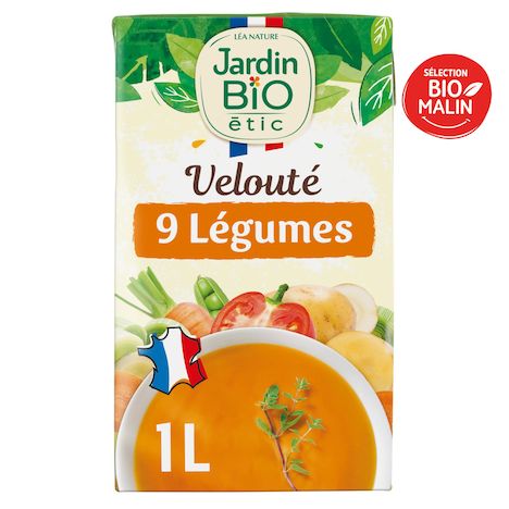 Jardin Bio étic© vous propose un délicieux velouté de 9 légumes bio, concocté dans le Nord de la France.