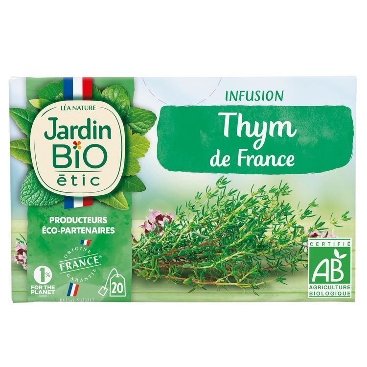 Ma tisane préférée chez Jardin Bio. Excellente. Très bon goût. Parfumée. En plus, le thym est d'origine française.