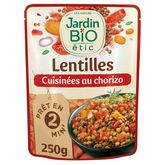 Parce que votre temps est précieux et que votre alimentation l'est aussi, Jardin BiO étic vous propose des menus express bio originaux et prêts en quelques minutes. Découvrez cette délicieuse recette de lentilles cuisinées aux petits légumes et au chorizo pour une petite note épicée et savoureuse à votre plat. Une solution repas pratique et gourmande. Bon appétit! Lentilles cuisinées aux légumes et chorizo Porc origine france Cuisiné dans notre conserverie Bio en France 1% pour la planète BIO Source de fibres et riche en protéines Prêt en 2 minutes