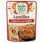 Lentilles cuisinées aux légumes et chorizo Porc origine france Cuisiné dans notre conserverie Bio en France 1% pour la planète