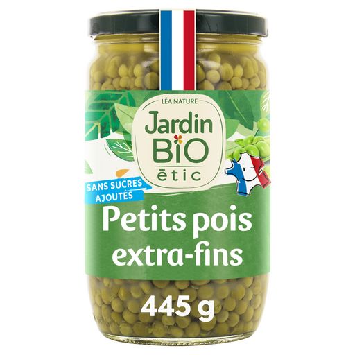 Jardin Bio étic© vous propose de délicieux petits pois extra-fins 100% bio. L'idéal pour accompagner viandes et poisson, ou agrémenter un riz cantonais. Bon appétit ! Petits pois extra fins Origine France Garantie Petits pois France 1% for the planet 100% bio Sans sucres ajoutés