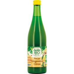 jus de gingembre* 55%, jus de citron* 45%. * Produits issus de l'agriculture biologique. 55% des ingrédients d'origine agricole sont conformes aux standards du commerce équitable (jus de gingembre).