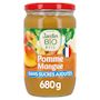 INGRÉDIENTS : pommes*¹ 80%, purée de mangues* 20%, antioxydant : acide ascorbique. *Produits issus de l'agriculture biologique. 1. Origine France (80% des ingrédients agricoles biologiques). 20% du total des ingrédients d'origine agricole sont issus du commerce équitable contrôlé selon le référentiel Fair for Life disponible sur www.fairforlife.org (purée de mangues).