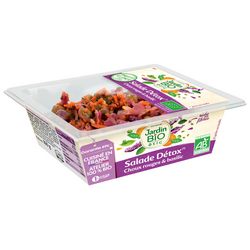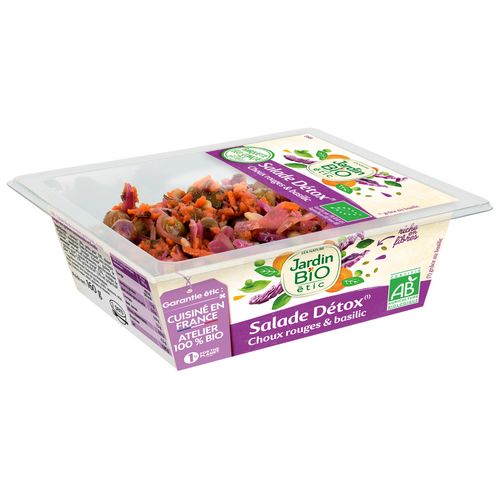 Une recette Bien - être aux allégations santé exclusives « détox » renforcé par la haute teneur en basilic. Fraîche, savoureuse et légère, elle est élaborée avec des carottes et du chou rouge français fraîchement râpés, des petits pois et du basilic. Salade concoctée dans notre atelier situé dans la Loire.