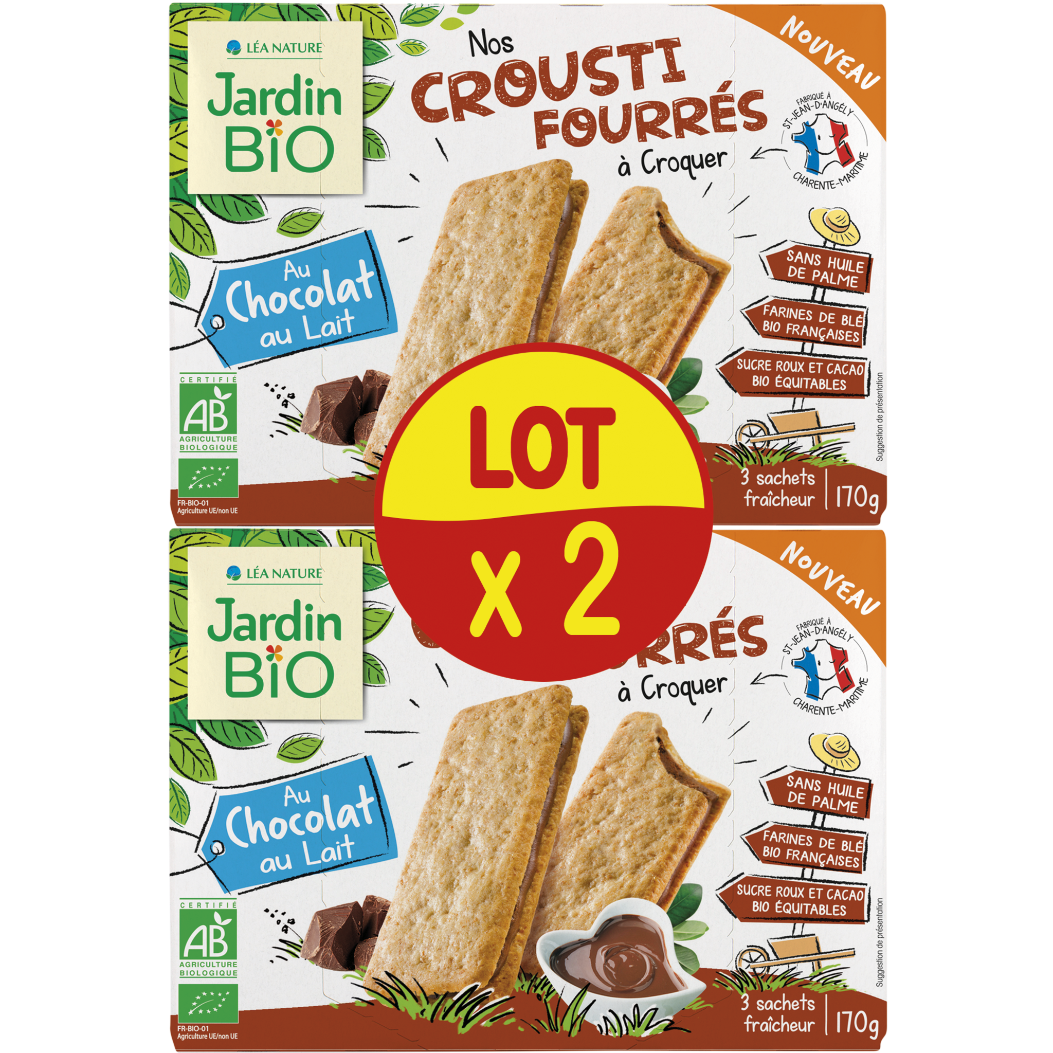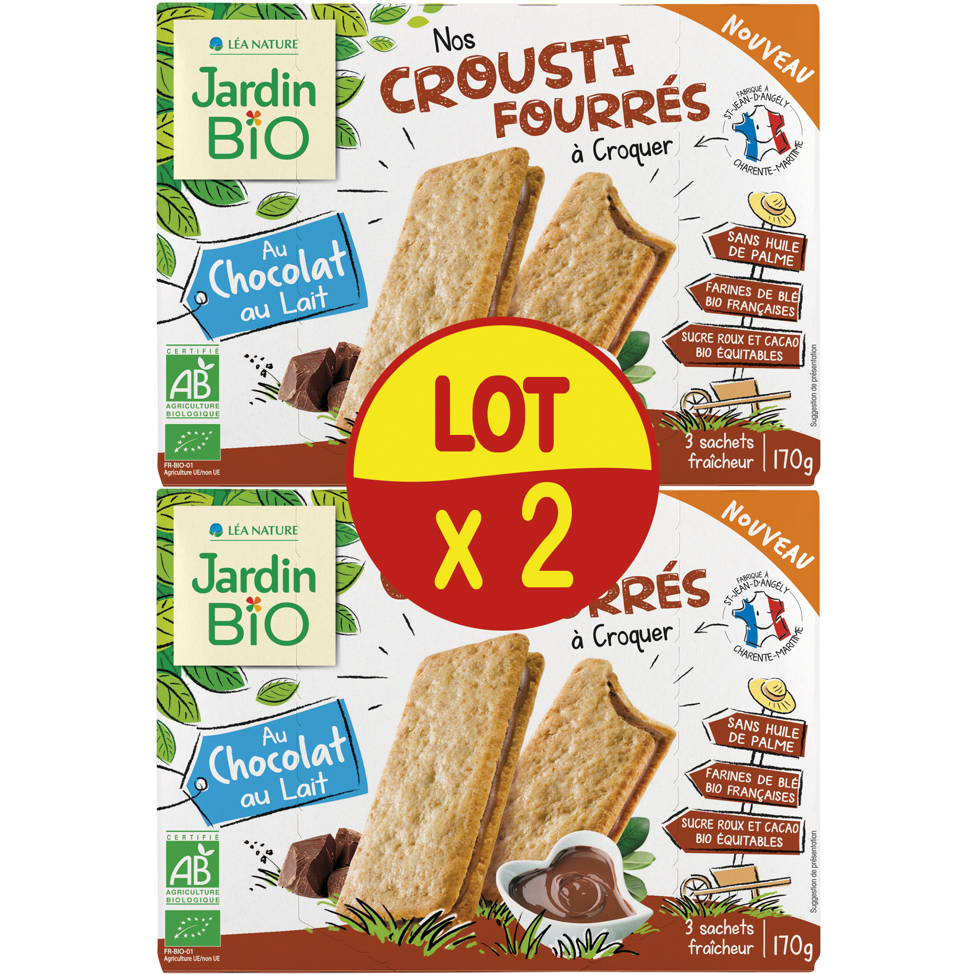 Gouters fourrés Fabriqué France SHDP Biscuits croustillants fourrés au chocolat au lait - BIO