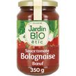 Jardin BiO étic® vous a mijoté une sauce cuisinée aux petits légumes et au bœuf bio élevé en France. Tomates de plein champs Bœuf origine France Cuisiné en France dans le Lot et Garonne 1% for the planet BIO Sans arômes ajoutés