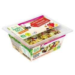 Fabrication française dans la Loire de Salades Bio gourmandes et savoureuses ! atières premières prioritairement sélectionnées en France. TABOULE AUX POIVRONS ET AUX FRUITS SECS