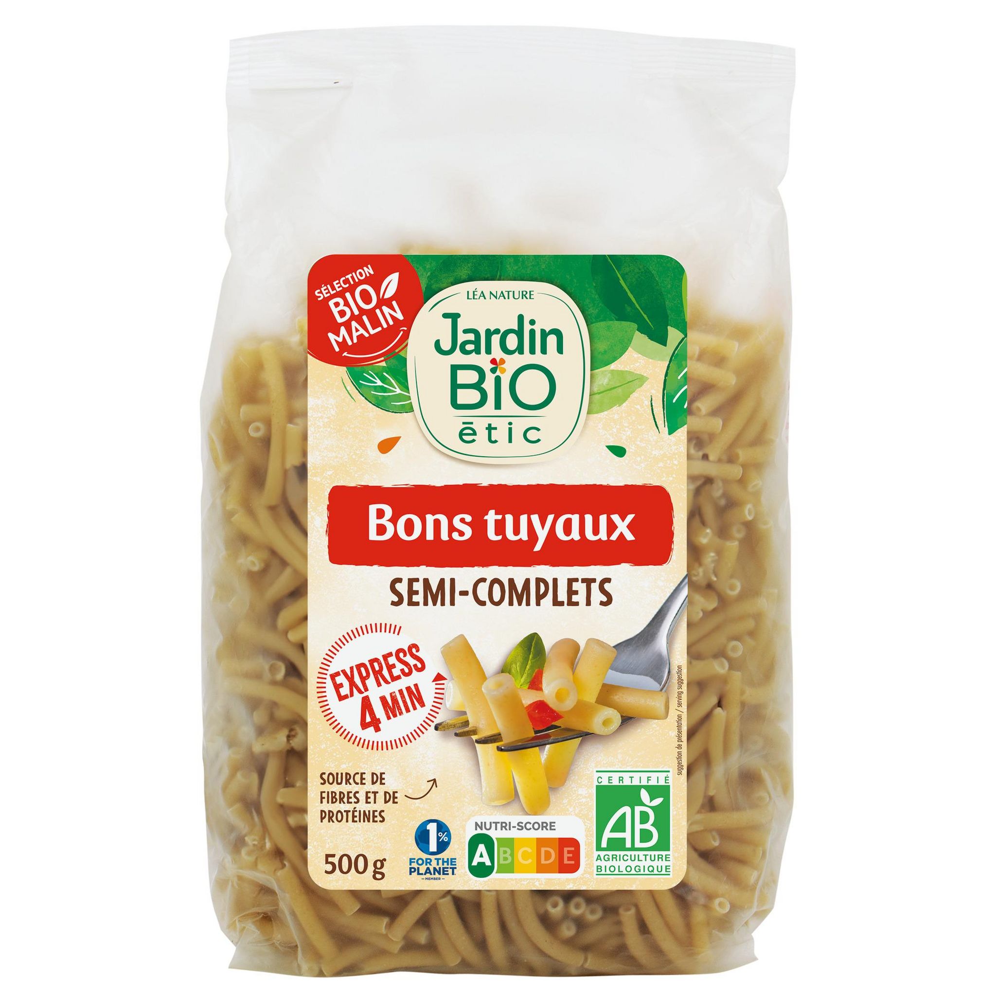 Sélection Bio Malin - Des produits bio pour le quotidien Parce que votre temps est aussi précieux que votre alimentation, les bons tuyaux (macaroni) Jardin Bio® sont préparés avec de la semoule de blé semi-complète pour permettre un apport en fibres et en protéines. Légèrement plus fines que les pâtes classiques, elles seront prêtes à déguster "al-dente" en 4min seulement ! Semoule de blé semi-complète 1% for the planet Bio Source de fibres et de protéines Cuisson express 4 min