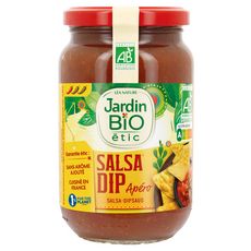 Dégustez notre sauce Salsa Dip pour un apéro Tex-Mex relevé. Légérement piquante la Salsa Dip sera parfaite pour tremper les chips tortillas Jardin BiO étic. BIO 1% pour la planète Sans aromes ajouté Cuisiné en France