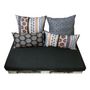 LE PACK DECO TRIBAL comprenant un matelas et de 5 coussins est composé d'un tissu en coton pour les coussins et de bois en hêtre naturel pour la palette qui en fait un noble produit. Cet ensemble intemporel vous fera voyager grâce à ce mélange de motifs différents rappelant les différentes contrées d'Afrique et vous assurera un moment de voyage et de détente garantit. Laissez libre cours à votre imagination et vos envies pour vous constituer un ensemble contenant les mêmes motifs ou en mélangeant pour obtenir un ensemble à votre image et vous garantira de bons moments de sieste et de repos dans votre jardin, votre terrasse ou balcon ! Ces produits sont conçus avec des matériaux recyclés et fabriqués en France !