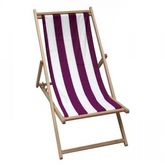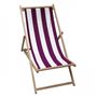Chilienne en bois - Imprimé Biarritz, rayé tulipe/blanc - Structure en hetre massif, finement poncé, inclinable 4 positions - Toile en coton lourd 210g agrafée sur la structure - Dimensions ouvertes : 106x55x95cm - Poids maximum supporté : 120kg.