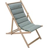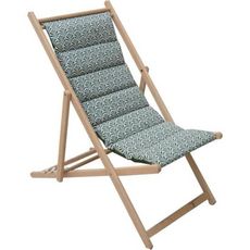 La chilienne matelassée Norvege avocat de JARDIN PRIVE est un transat pliant en bois de hetre massif FSC. Elle dispose d'une toile en polycoton 170gr/m² traitée déperlant et amovible. La structure offre 4 positions d'inclinaison. Dimensions : L.132 x l.55 x H.35 cm.
