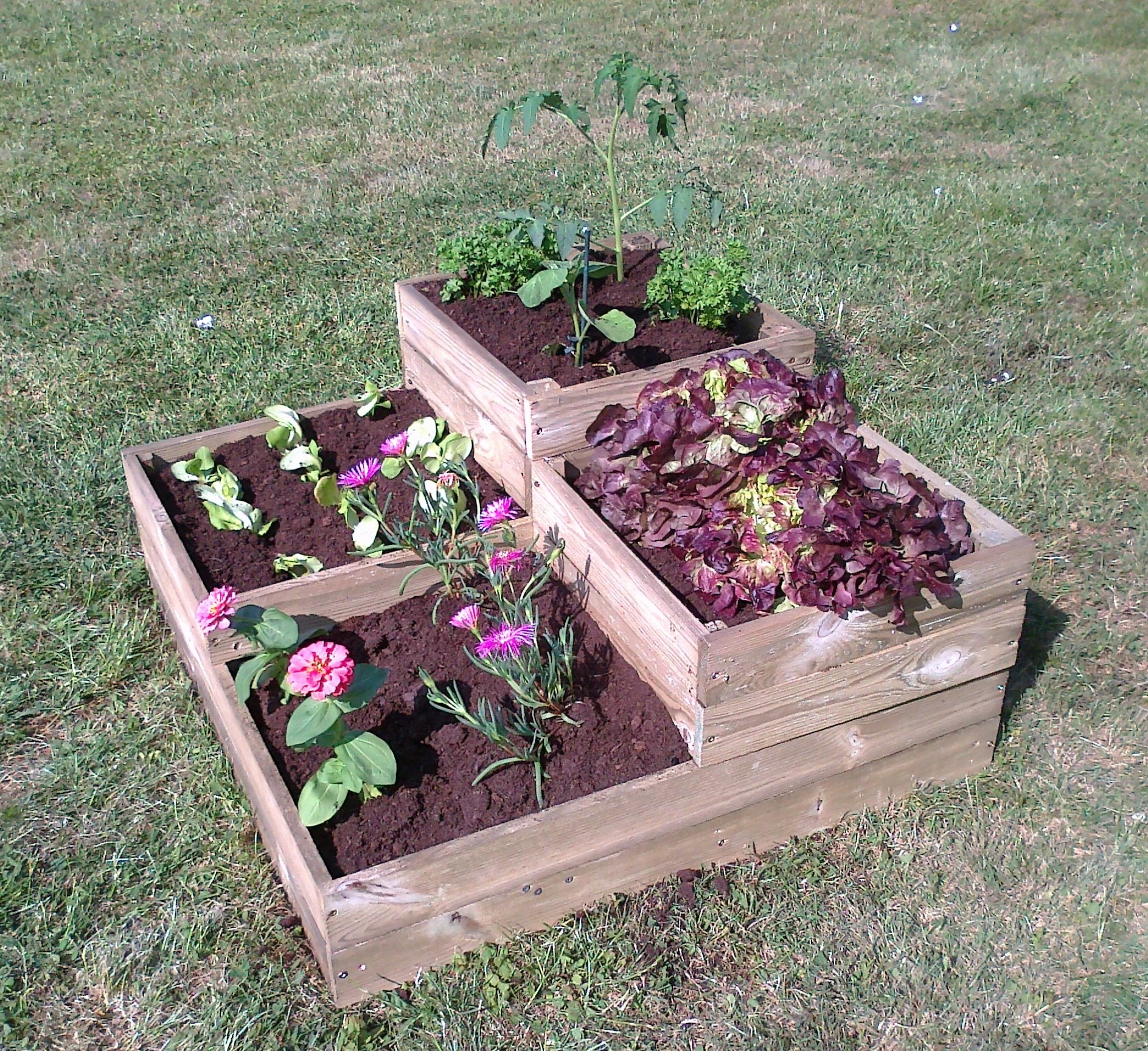 Carré potager modulaire L80xl80 4 niveaux H15/23/31/37 cm 4 bacs 40x40 cm avec géotextile en pin autoclavé 100 % FSC