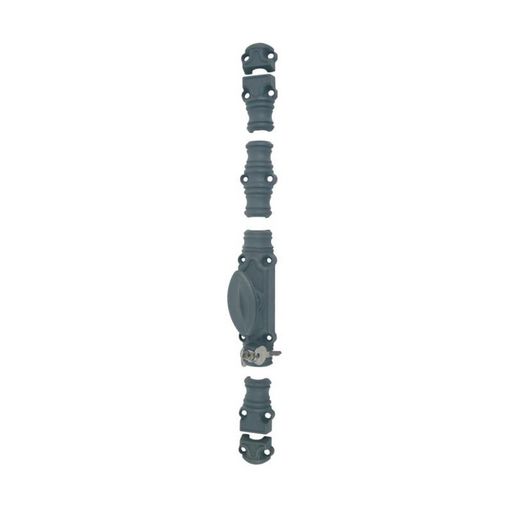 Crémone rustique, série forte, fonte, bouton ovale ou torsadé- Pour tringle de 16 x 8,non fournie- Fournie avec gâches et conduits Esthétique rustique à la qualité inégalée.