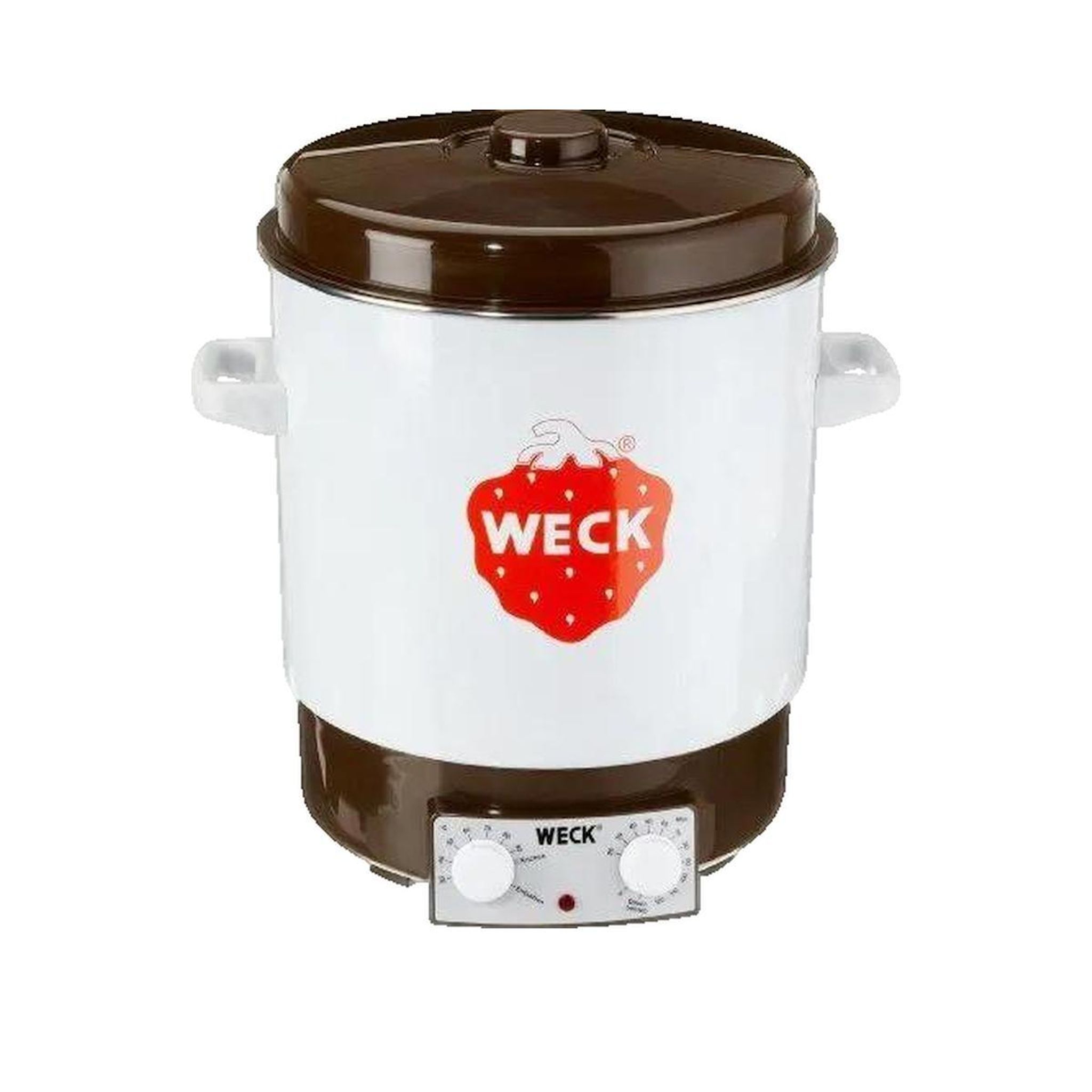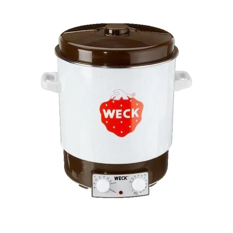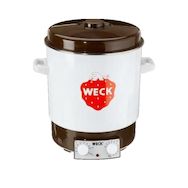 Le Weck Einkochautomat WAT 15 de la marque jata est un appareil moderne destiné à la conservation des aliments. Il est présenté en couleur crème avec un couvercle noir. L'appareil possède une puissance de 2000 Watts et une capacité de 29 litres, permettant de stériliser jusqu'à 14 bocaux d'un litre. Fabriqué en émail de haute qualité, il allie esthétique et durabilité. Équipé d'un thermostat précis et de protections contre la surchauffe, cet équipement est idéal pour les passionnés de cuisine souhaitant conserver leurs préparations maison de manière efficace et sécurisée.