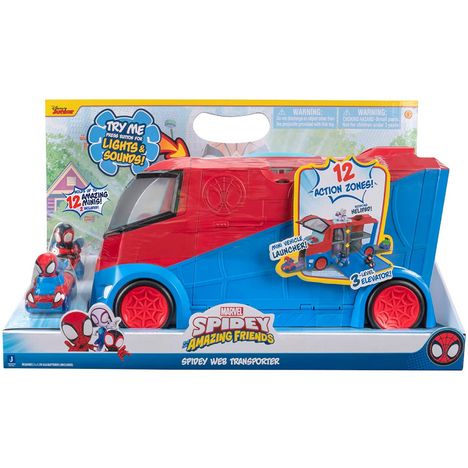 - Le transporteur de toile de Spidey et ses incroyables amis de Marvel est prêt pour!12 ZONES D'ACTION Lumières et sons, laboratoire de toile, cabine qui s'ouvre par basculement, ascenseur, héliport rotatif et plus encore !