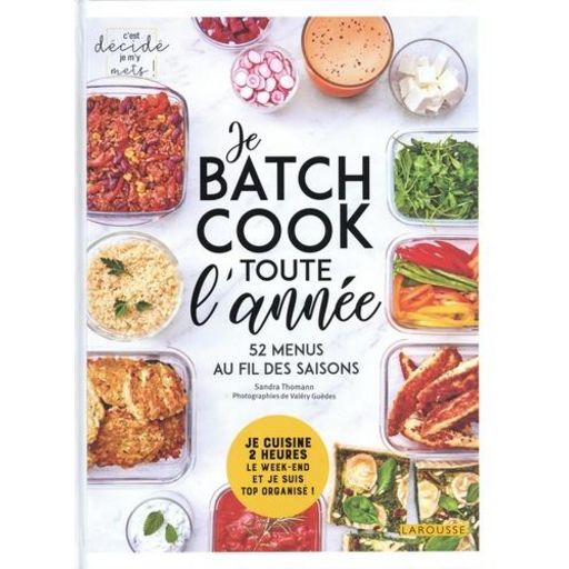 Vous avez toujours rêvé d'avoir votre menu prêt chaque soir de la semaine et durant toute l'année, sans vous creuser les méninges ni passer toutes vos soirées à cuisiner ? Ce livre est LA bible du batch cooking ! Découvrez 52 semaines de menus imaginés par Sandra au fil des saisons, faciles et rapides à préparer et toujours gourmands. Choisissez celui qui vous fait envie, faites vos courses grâce à la liste fournie et réservez-vous 2 ou 3 heures le dimanche pour préparer les dîners du lundi au vendredi en suivant les recettes pas à pas. Il ne vous restera plus qu'à les assembler et les réchauffer les soirs venus et vous régaler en famille !