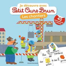 La grue, le marteau-piqueur, le marteau et les clous... 40 autocollants à placer dans le texte pour découvrir en mots et en images les chantiers avec Petit Ours Brun.