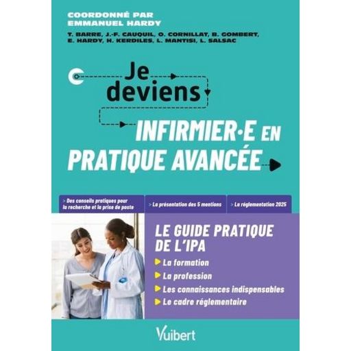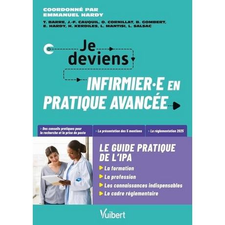 Tout pour préparer sa formation et sa prise de poste ! Vous êtes infirmière à l'hôpital, dans une structure de soins ou en libéral et vous avez pour projet de devenir infirmière en pratique avancée ? Depuis 2019, le métier d'infirmière en pratique avancée (IPA) occupe une place centrale dans le paysage du soin en France. Il est au coeur de l'actualité et toujours en mouvement. Pour avoir une vision claire de cette spécialisation et trouver toutes les dernières avancées, un livre s'imposait ! Obtenir des financements, s'organiser pendant ses 2 années d'études, choisir une orientation parmi les cinq mentions IPA (pathologies chroniques stabilisées, prévention et polypathologies courantes en soins primaires , oncologie et hémato-oncologie , maladie rénale chronique, dialyse et transplantation , psychiatrie et santé mentale , urgences) ou postuler avec son nouveau statut : ceci nécessite des connaissances solides. Ce livre, écrit par 8 IPA, a pour objectif d'accompagner les infirmiers pas à pas tout au long de leur processus de spécialisation en pratique avancée. Il abordera notamment : - les actes que l'IPA peut effectuer , - les compétences indispensables à l'exercice , - les enseignements suivis pendant les 2 années de Master et les stages , - la législation la plus récente de la profession , - ou encore la recherche de poste avec des modèles de CV et de lettre de motivation. La théorie et les informations pratiques sont ainsi réunies pour vous aider à préparer et réaliser votre projet professionnel.
