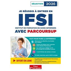 L'essentiel pour optimiser vos chances d'entrer en IFSI et devenir infirmier avec la procédure Parcoursup ! Un livre complet pour : - tout savoir sur les études d'infirmière, d'infirmier et sur la profession, avec : - le contenu de la formation, les évaluations, - la description des missions, des lieux d'exercice, de la carrière, - les 10 qualités de l'infirmier, - des témoignages de profesionnels, - un quiz sur le métier et les études , - réussir son dossier Parcoursup et valoriser sa candidature pas à pas, grâce à : - un calendrier et les étapes-clés : inscriptions, voeux, dossier, - des conseils et stratégies pour élaborer son projet professionnel, - des outils et exemples pour rédiger ses projets de formation motivés, CV et lettres de motivation , - se remettre à niveau, avec : - 35 fiches de cours portant sur les connaissances indispensables en culture sanitaire et sociale (à jour des dernières recommandations sur le sujet), les aptitudes mathématiques et logico-déductives, la biologie et l'anglais, mais aussi les compétences à acquérir en communication écrite et orale, - 70 tests, exercices et QCM corrigés pour s'auto-évaluer. + OFFERT en ligne : - un guide d'accompagnement Parcoursup personnalisable , - des QCM et exercices supplémentaires en maths, français et anglais , - 50 flashcards interactives.