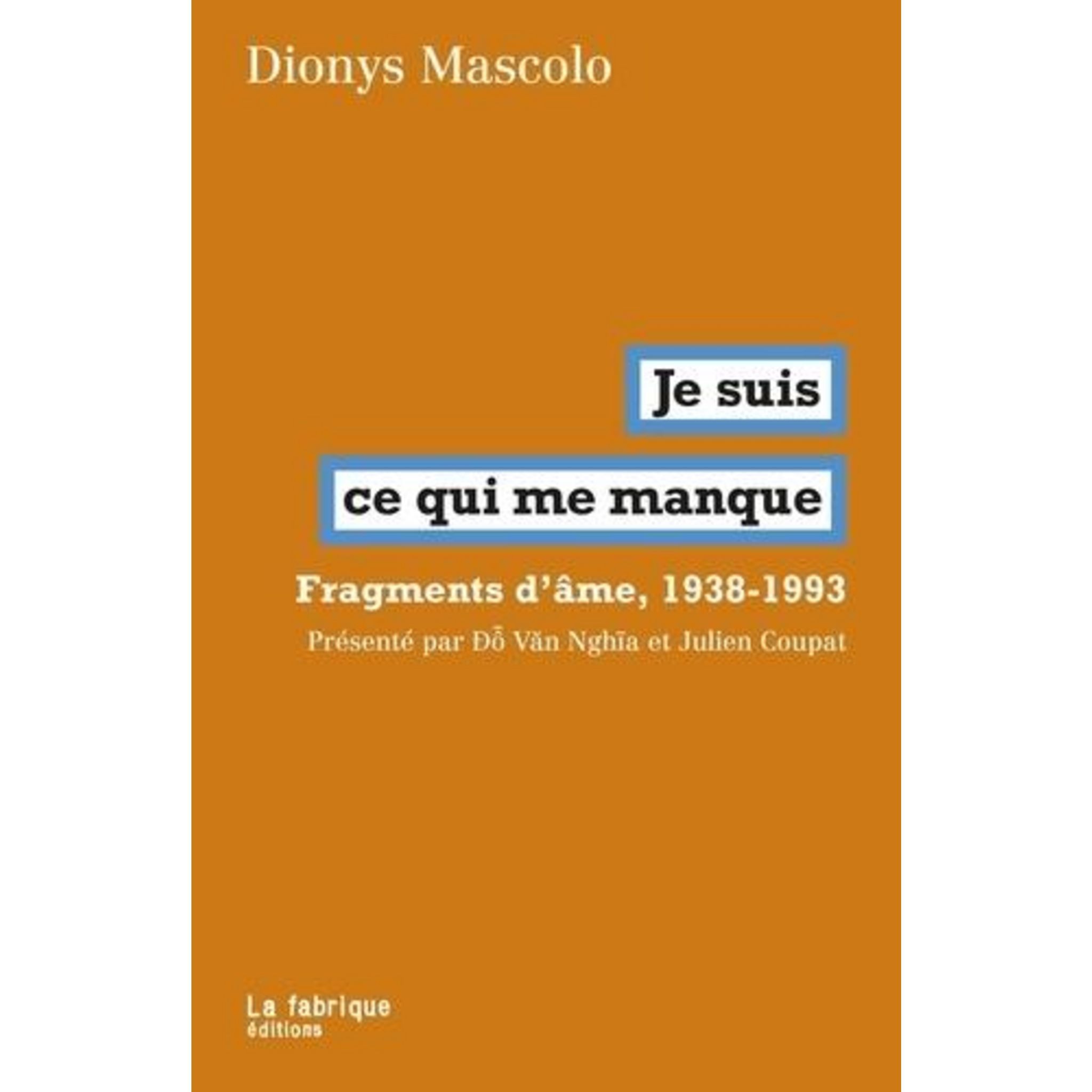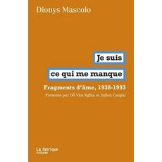 Enfin soustrait à l'ombre de Marguerite Duras, Dionys Mascolo se détache de plus en plus comme l'un des penseurs décisifs de notre époque, à la mesure de sa discrétion même. Il est vrai que, dans cette vaste société de cour que demeure la France démocratique, on a coutume de négliger ceux qui négligent d'organiser leur propre promotion. Je suis ce qui me manque rend pleinement justice aux qualités de penseur, de poète et de styliste de Dionys Mascolo, dans une écriture plus directe que celle de l'oeuvre publiée à ce jour. Extraits des carnets qu'il a tenus durant soixante ans, de 1938 à sa mort en 1997, ces fragments dessinent une possibilité de vie à la hauteur de notre temps, tant la configuration existentielle de l'époque a peu changé depuis les années 1930 - et pour cause. Ce sont les réflexions, les choses vues, les perceptions fulgurées, les aphorismes d'un homme confronté à l'Occupation, à la Libération, au surréalisme, au socialisme stalinien, à la décolonisation, au gaullisme, à mai 68, à la glaciation des années 1980, à la musique, à l'amour, à l'ennui, au dégoût, au besoin, à la révolution, au désir de mourir, au milieu littéraire, au lever du jour, à Stendhal. D'un fragment l'autre s'élabore au fil des pages un art de vivre qui ne cède rien à l'époque, et qui fait voir en creux ce que le communisme véritable, le communisme toujours possible doit à l'intransigeance la plus irréconciliée sur la sensibilité comme sur la pensée. Le lecteur trouvera là une sorte de vade-mecum venu à lui de l'autre siècle afin de s'extraire de la confusion opportune et du nihilisme bien réel par quoi se survit cette civilisation faillie. Au moment où le dispositif que forment ensemble le gauchisme et l'extrême droite se referme sur nous pour nous dérober tout air respirable, Dionys Mascolo nous livre là, pépite de pensée après cristal d'affect, une voie de sortie mûrement réfléchie et intimement vécue - hors du capital, hors de l'idéologie, hors de la mauvaise conscience, hors de la politique. C'est à l'intelligence et à la poursuite d'un tel chemin qu'est consacrée la postface proposée par Julien Coupat et D ? Van Nghia à ces textes inédits qu'ils ont établis et assemblés.