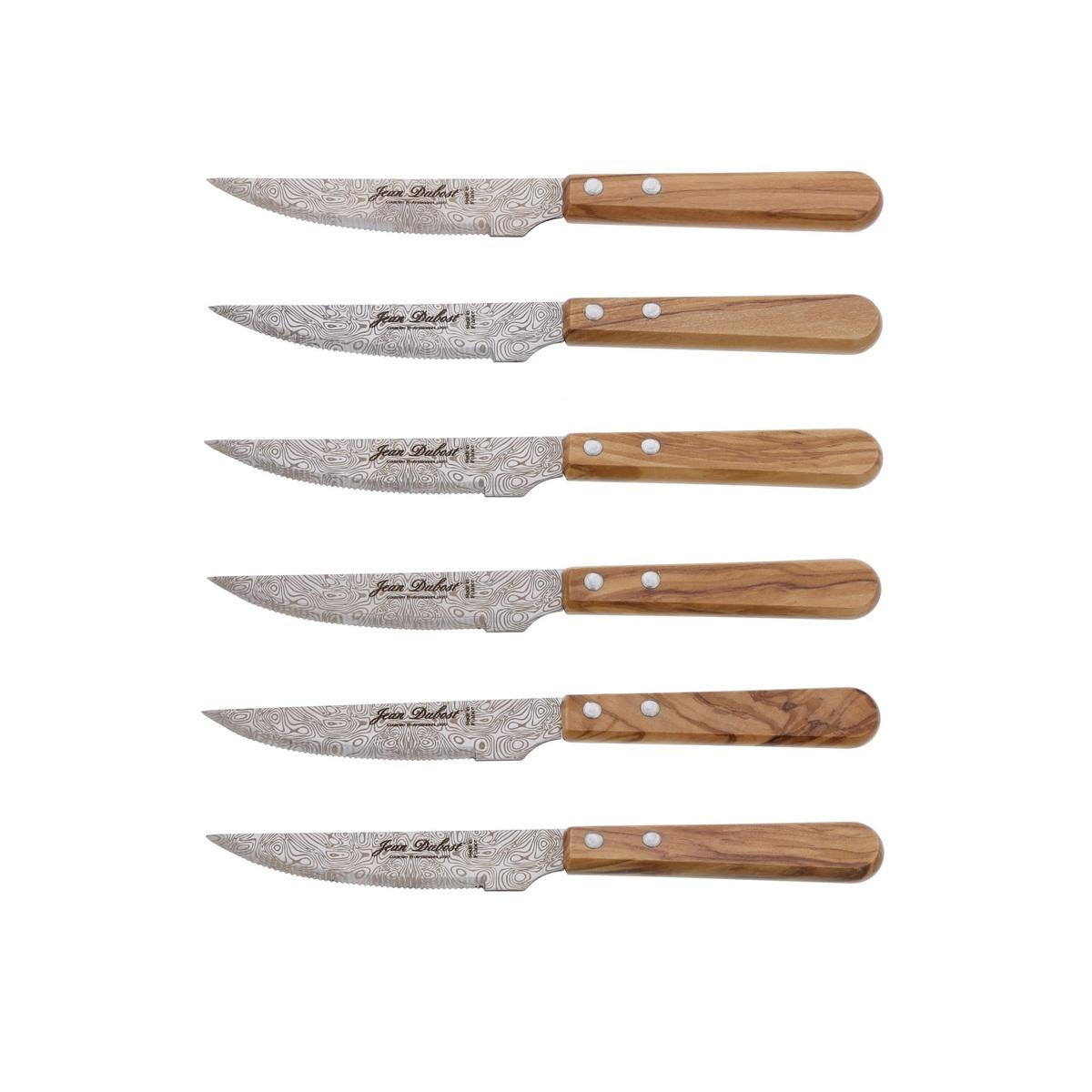 Jean Dubost CB10A79SD33311 Couteaux cb10a79sd33311 de Jean Dubost . Une collection élégante qui allie la finesse du décor Damas au veinage unique du bois d'olivier pour des couteaux d'exception ! - Grâce à ces couteaux à steaks, découpez et dégustez facilement toutes vos viandes ! - Lame demi-soie 11 cm large et robuste en acier inoxydable - Décor Damas par marquage laser - Fine micro-denture pour une coupe nette sans déchirer votre viande - Manche en bois d'olivier - Rivets inox - Coffret en carton kraft recyclé - Nettoyage facile à l'eau chaude savonneuse - Fabriqué en France.