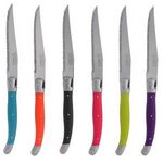 Jean Dubost LOO60011TON Coffret de 6 couteaux à steak Laguiole Tonic Mix LOO60011TON de Jean Dubost. Des couverts aux coloris acidulés assortis pour égayer votre table en y apportant une touche de couleur ! Lame inox pleine soie micro-dentée d'épaisseur de 1.2 mm. Coupe rasoir sans affûtage. Manche