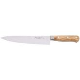 Doté d'un manche en bois d'olivier, chaque couteau est une pièce unique, offrant une prise en main élégante et ergonomique. La lame en acier de 20 cm d'une épaisseur de 2 mm, assure une découpe précise et efficace, répondant aux normes élevées de qualité de fabrication françaises.