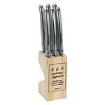 Jean Dubost 16572 Jean DUBOST nous présente un lots de 6 couteaux à steak Laguiole 16572 totalement en Inox, fabriqués par un Maître coutelier à Thiers et rangés dans un bloc en bois naturel.