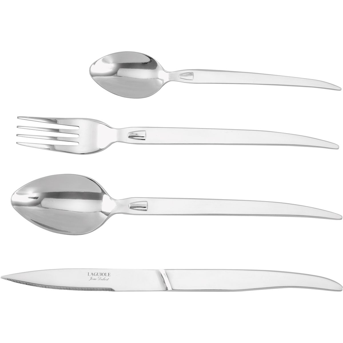 6 couteaux, 6 fourchettes, 6 cuillères à soupe et 6 cuillères à café