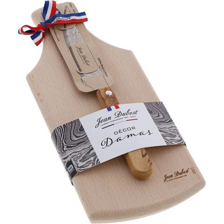 Planche à découper apéritf en hetre + couteau olivier