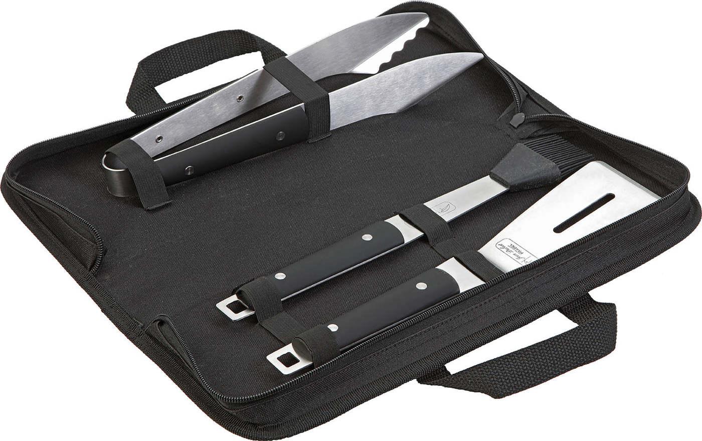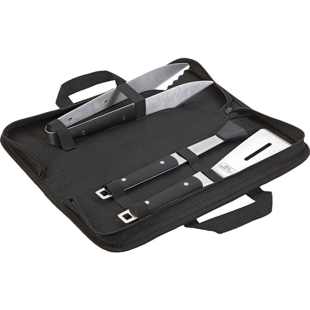 Jean Dubost BM065660X70023 Set plancha MILL Jean Dubost BM065660X70023 composé d'un pinceau, un spatule et 1 pince avec sacoche de rangement. Le Set plancha MILL est en acier inoxydable pleine soie avec manche noir toucher soft. - Type : Set pour plancha.Matière : Acier inox.Finition : Manche touche