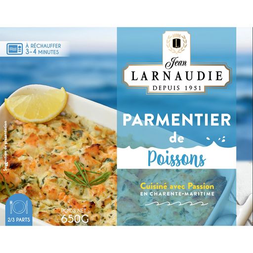 Ingrédients : Purée de pommes de terre 58,8% (pommes de terre 83%, eau, huile de palme, LACTOSERUM en poudre, LAIT en poudre, LACTOSE, huile de beurre (LAIT), arôme naturel, sel, dextose, crème en poudre (LAIT), oignon, poivre blanc), saumon fumé 12,4% (Saumon (Salmo salar), sel de l'île de ré) (POISSON), colin 12,4% (POISSON), oignon, LAIT, crème (LAIT) (dont stabilisant : carraghénanes), beurre (LAIT), fumet de poisson (lactose (LAIT), sel, poisson poudre (POISSON), extrait de levure, oignon), jus de citron, ciboulettes, sel.
