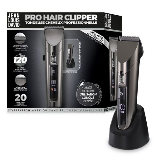 Appareil rechargeable et longue autonomie : équipée d’une batterie Lithium-ion rechargeable, cette tondeuse cheveux se recharge en 90 minutes sur son socle pour une utilisation sans fil jusqu’à 120 minutes.