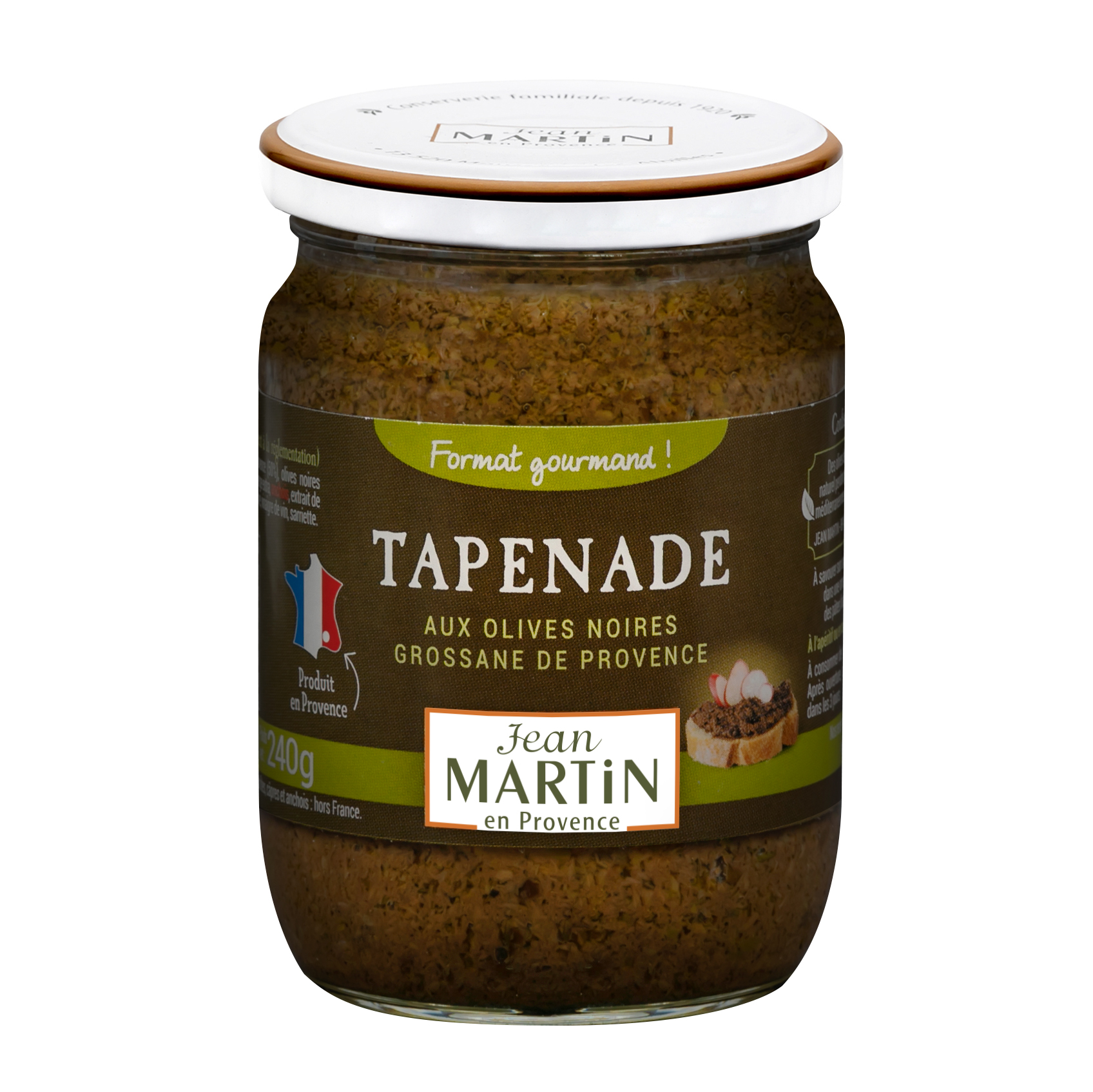 Olives noires Grossanes (46%), olives noires confites d’importation (38%), câpres (5%), sel, anchois, huile d'olive vierge extra, extrait de liqueur de Frigolet, laurier, thym, poivre, vinaigre, sariette. Allergène : anchois