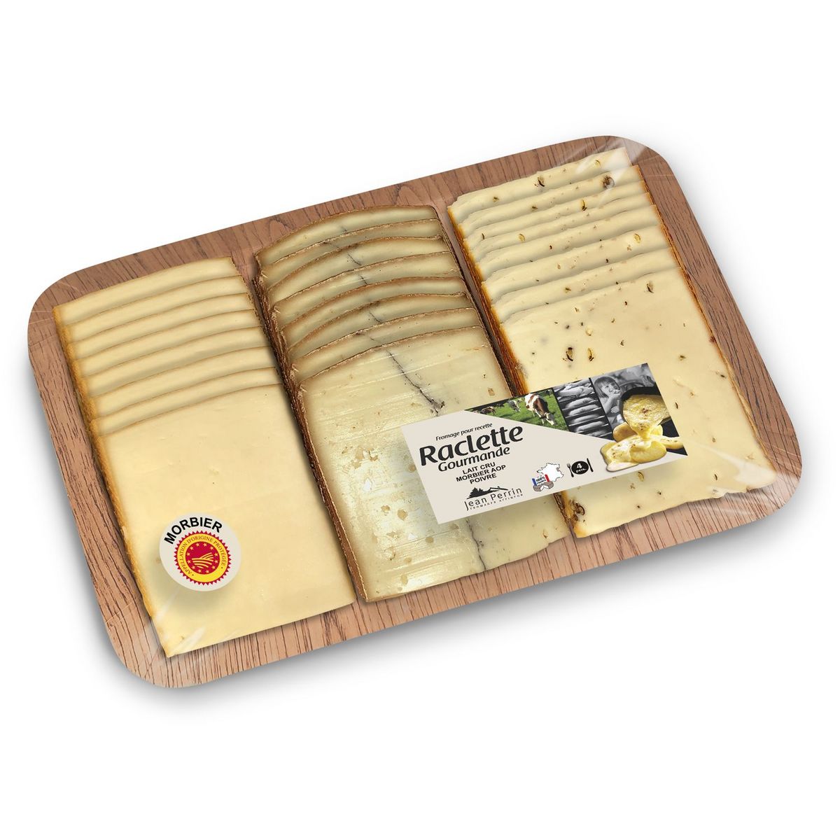 RACLETTE 720G LAIT CRU-MORBIER AOP-POIVRE X4 >4 A 5 PARTS< PLATEAU PREEMBALLE