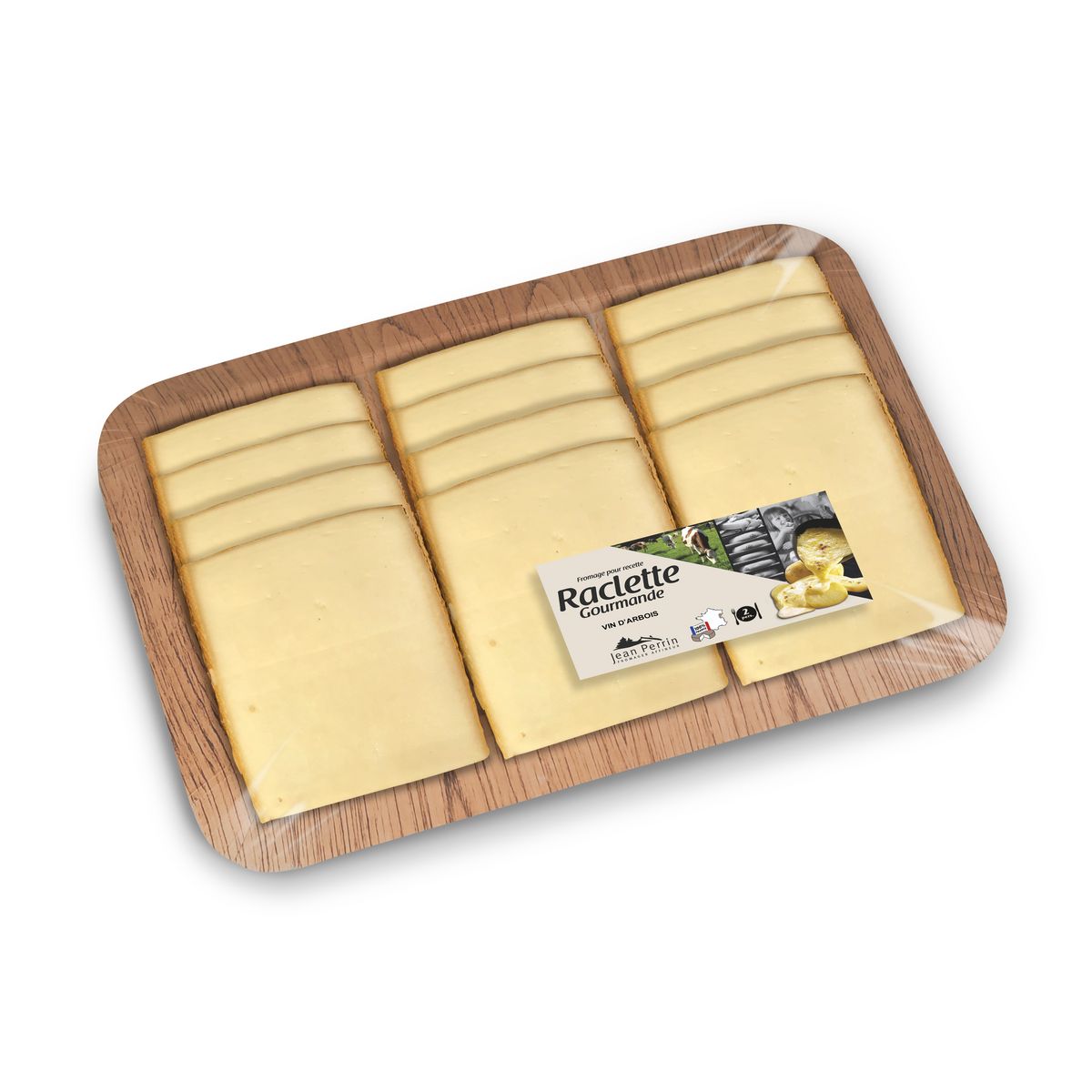 L'alliance du fromager Jean Perrin et du vigneron transmet à cette raclette durant ses 8 semaines d'affinage des arômes délicats, et lui donne un goût fruité caractéristique. La raclette affinée au vin d'Arbois acquiert ainsi un fondant en bouche inimitable, à l'image du vin qui l'aide à mûrir. Présentées sur un plateau, les tranchettes de 30g se partagent à 2 personnes.