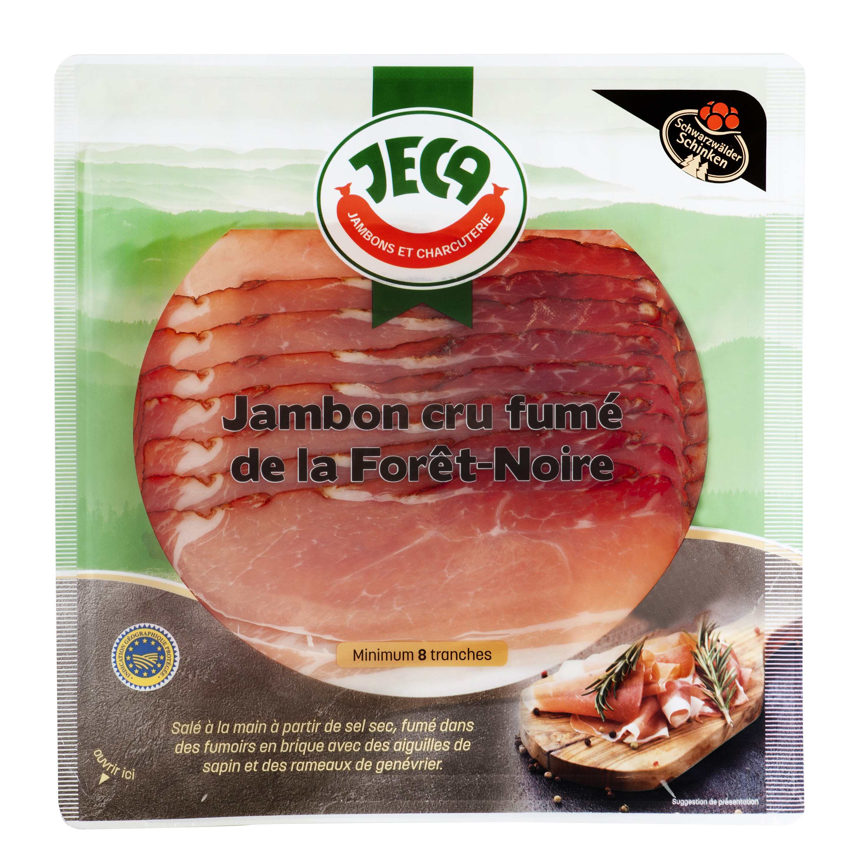 Le Jambon de la Forêt Noire est un jambon légèrement salé et fumé, ferme en bouche sans être ni dur, ni fibreux. Depuis 1997, le jambon de la Forêt Noire possède l'IGP