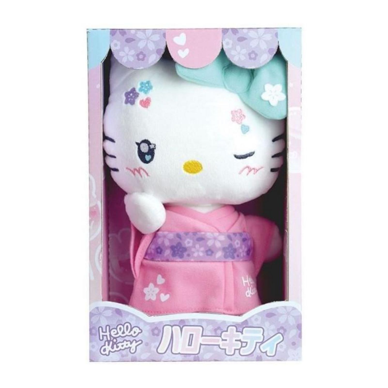Cette jolie peluche HELLO KITTY mesure +/- 22 cm et porte un kimono rose avec des tongs. Parfaite représentation de la version kawai, elle fera craquer toutes les kitty addict. Livrée dans une jolie boîte, elle fera plaisir a coup sûr !