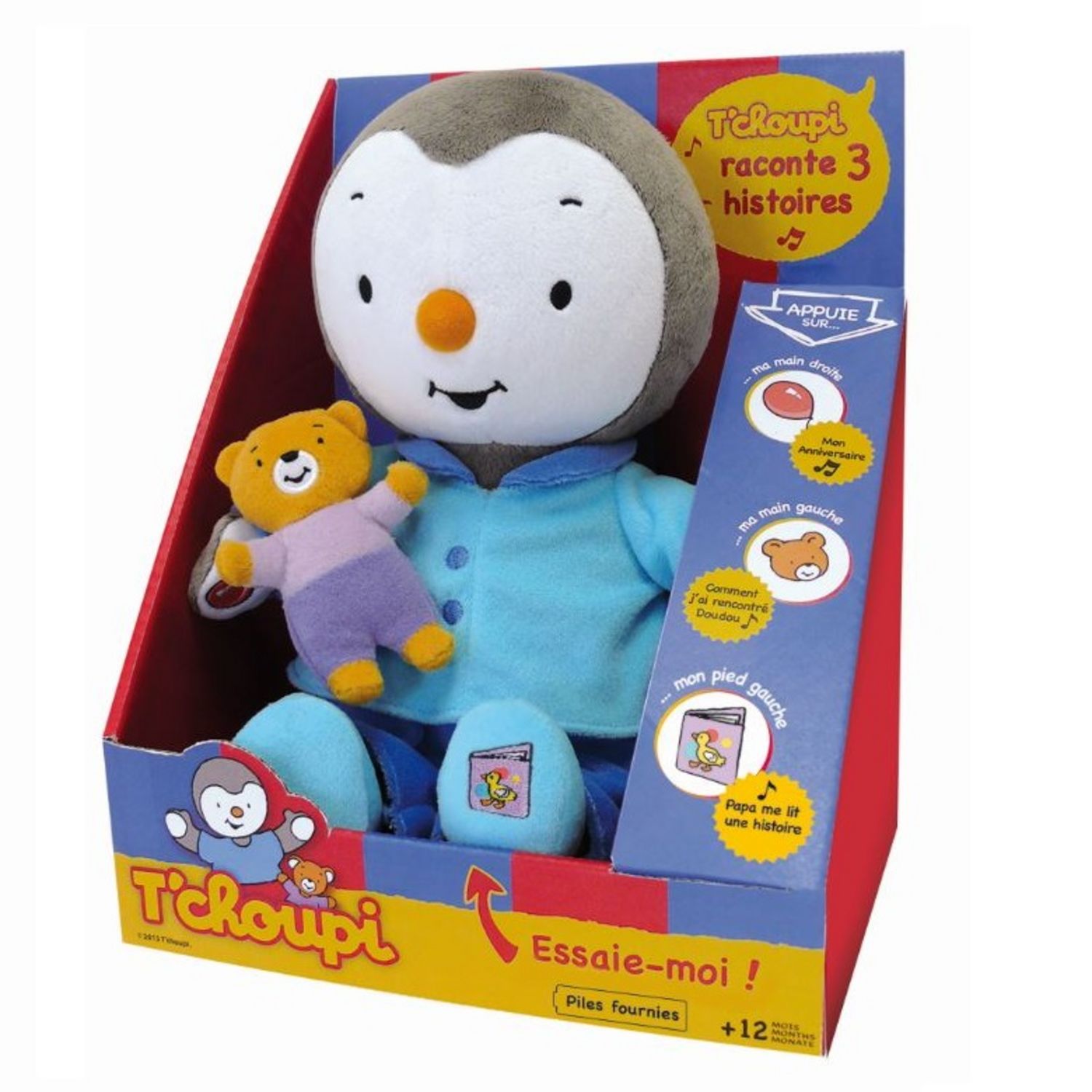 Écoute les histoires de Tchoupi avec cette peluche parlante. Lorsque tu appuies sur sa main droite il parle de son anniversaire, sur sa main gauche il raconte sa rencontre avec doudou et sur son pied droit son papa lit une histoire.