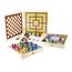 Coffret bois - Jeux de société : 100 jeux. Jeux des petits chevaux, oie, dames, marelle, jeu de 54 cartes. Pions en bois et livret de règles. Dimensions coffret : 30 x 30 x 5 cm. Age minimum : 3 ans