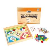 Jeu du nain jaune - coffret en bois : Jeu de 54 cartes, sachet de jetons. Regle du jeu. Dimensions du produit : 30.5 x 25 x 4 cm . A partir de 3 ans.
