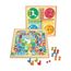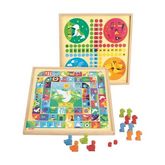 Jeux de l'oie et petits chevaux - plateau en bois : Pions en bois : 8 chevaux, 4 oies, 2 dés. Regles des jeux. Dimensions du produit : 33 x 33 x 2 cm. A partir de 3 ans.