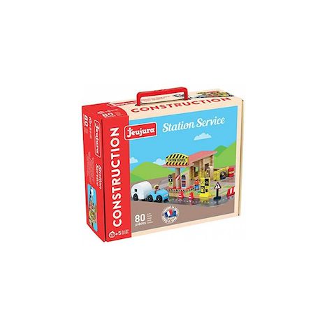 Une magnifique station service en bois naturel et teinté à construire. 80 pièces et une notice de montage, un tapis de jeu et de nombreux accessoires. Afin de développer sa dextérité et son imagination, l'enfant bâtira la station service Jeujura et s'inventera de nombreuses histoires en jouant avec le personnage et les différents éléments. Fabriqué en France.