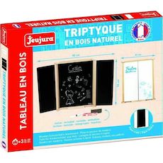 Le tableau éducatif en bois Jeujura naturel est conçu pour stimuler la créativité et l'apprentissage des enfants dès 3 ans. Il comprend une ardoise centrale pour écrire à la craie, ainsi que deux volets pour dessiner. Fabriqué en bois naturel robuste, il assure durabilité et élégance. L'ensemble est