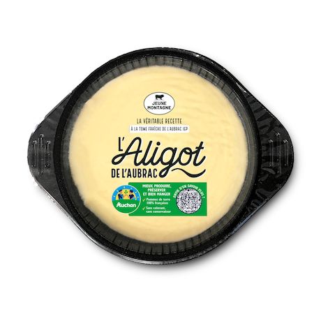 Après avoir retiré le film transparent, chauffez à puissance maximale 1 minutes. Remuez puis recommencer l’opération une seconde fois. Etirez ensuite l’Aligot plusieurs fois. Conseil de préparation Vous pouvez personnaliser votre Aligot de l’Aubrac en y ajoutant poivre, ail, noix de muscade, jus de viande ou lardons. Savourez-le en plat unique ou bien accompagné d’un rôti, d’une viande rouge, d’une saucisse ou d’une salade.