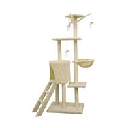 Cet arbre à chat dispose de trois plateformes, d'un perchoir, d'une niche et d'un escalier, permettant à votre chat de grimper, se reposer et jouer. Les poteaux à griffer sont également présents, répondant aux besoins naturels de votre animal. La couleur beige s'intègre parfaitement dans la plupart des décors intérieurs, offrant une touche de chaleur et de confort.