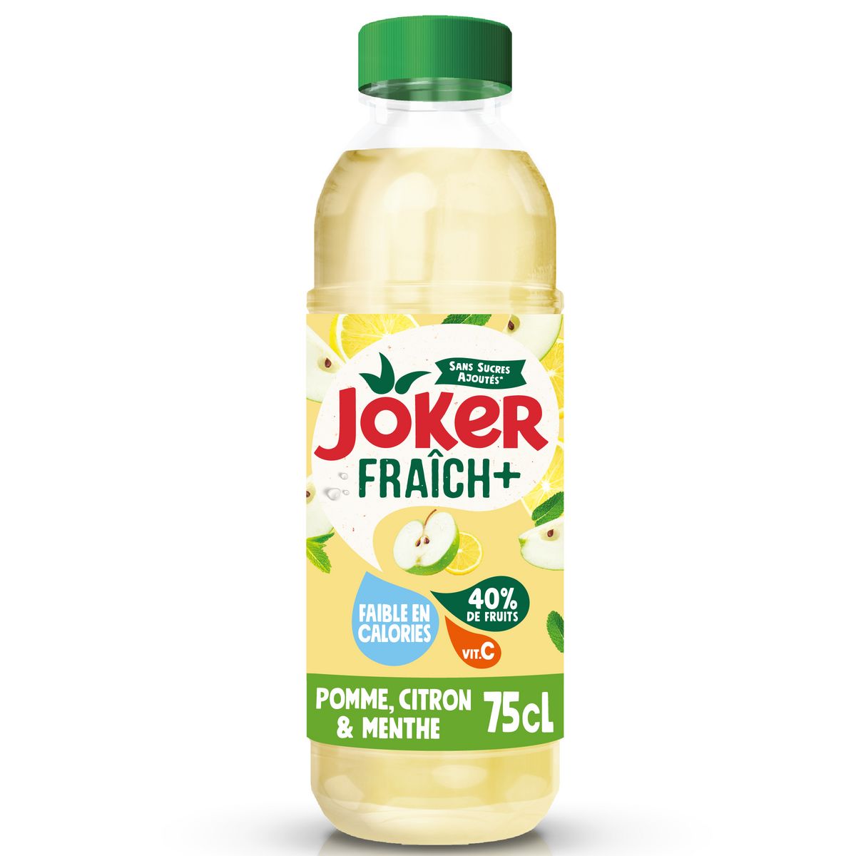 Découvrez FRAÎCH+ Pomme Citron Menthe : une boisson rafraîchissante sans sucres ajoutés*, composée de 40% de fruits et faible en calories. Un goût délicieusement fruité de pomme et de citron allié à une saveur menthe pour une sensation de fraîcheur.
